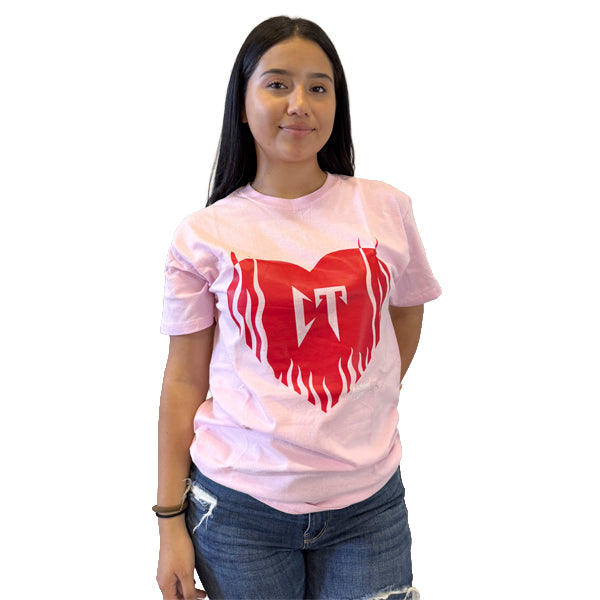 Playera color negro y rosa con el corazón CT fire